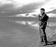 1972年,记者在前往黄河源途中,摄于札陵湖畔。 贾玉江摄