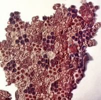 1972年,吐鲁番阿斯塔那出土的唐代绛色柿蒂纹印花纱,新疆维吾尔自治区博物馆藏。茹遂初摄