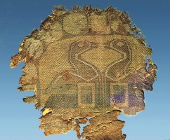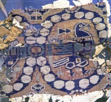 1972年,吐鲁番出土的晋代海兽葡萄纹绣 ,新疆维吾尔自治区博物馆藏。茹遂初摄