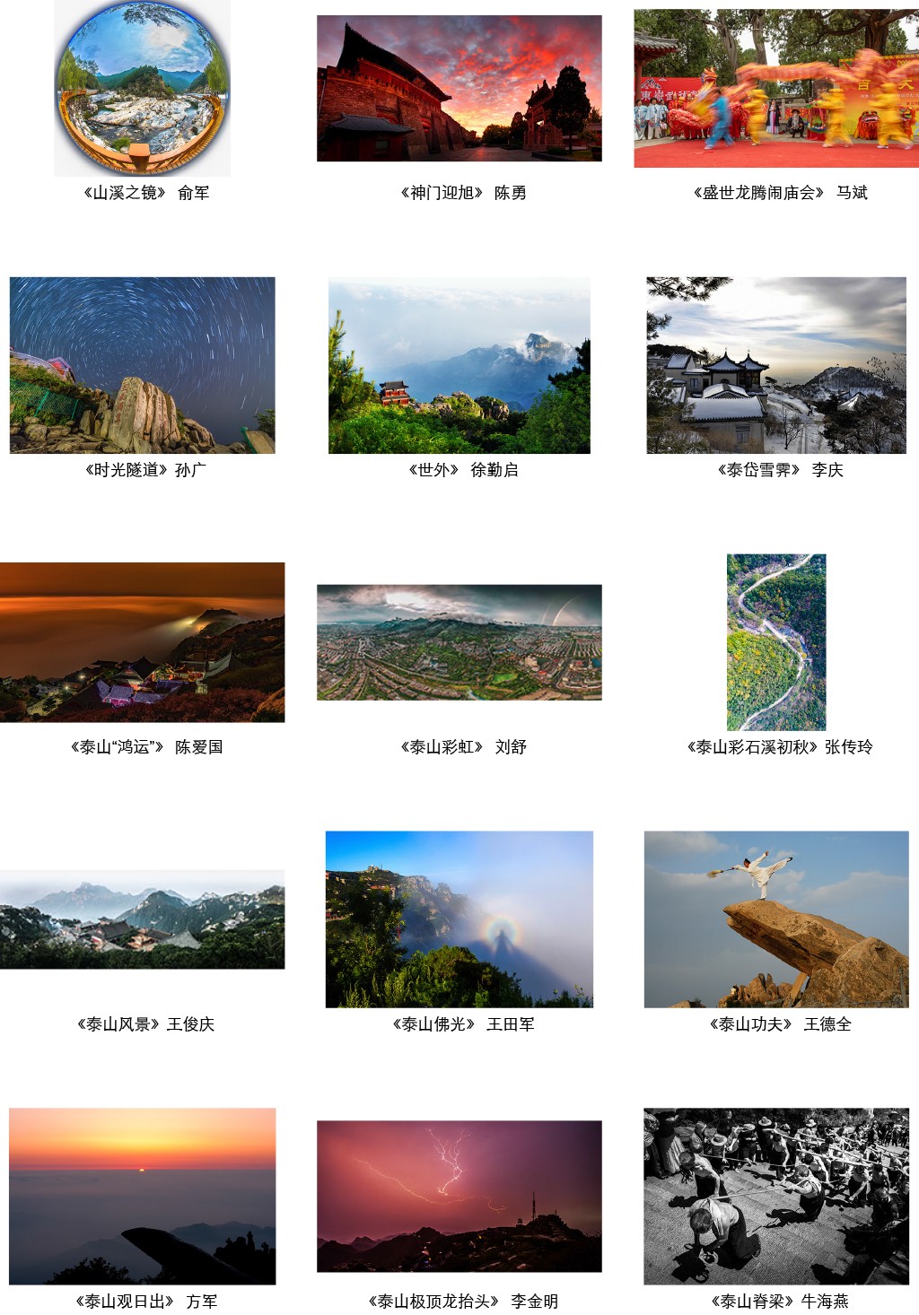 “中华泰山 国泰民安”全国摄影大展拟入展作品:
