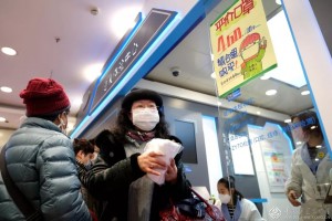 1月23日,南京东路第一医药商店市民们排队购买平价口罩。任国强 摄