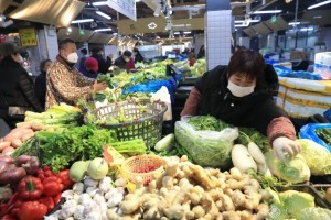 1月28日,黄浦区多家标准化菜场货源充足,市民在平价蔬菜摊位挑选平价菜。任国强 摄