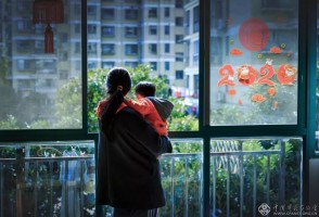 2月4日,宝山大场镇康泰新城小区一位年轻的母亲在家里抱着儿子,欣赏着室外的景色,期待着早日能够和家人一起走进新的春天自由自在地享受美妙的春光。张志凌 摄