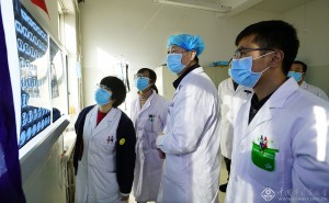 1月29日,甘南州人民医院传染科医生们在查看CT片诊断。 后俊 摄