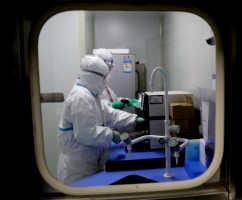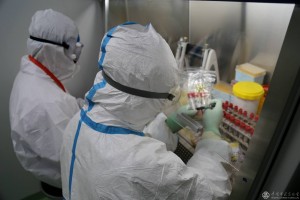 1月29日,甘南州疾控中心化验室化验员查看化验结果。后俊 摄