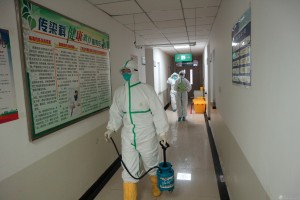 消杀人员进入隔离病房消毒。 王彩环 摄