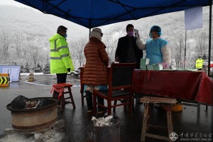 平凉市乡镇检查点大雪天检测。刘众 摄