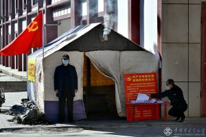 2月2日民乐县农机站小区党员先锋岗疫情检查点。吴开春 摄