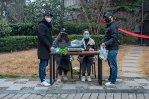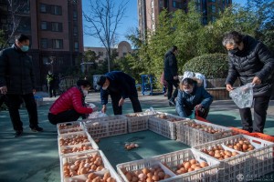 物业公司、业委会及居民志愿者自发成立了居民生活公益保障队,每隔两天,保障队都会为居民们到蔬菜批发市场及日用品超市采购生活物资,并以进价卖给小区居民。