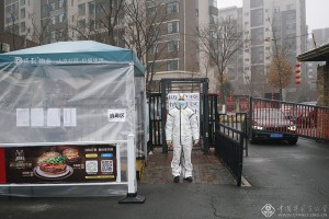 2月13日,每一个防疫岗、检查卡等都严阵以待,检查人员在寒风中守望。