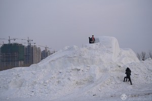 2月15日,伊通河畔一座被废弃的雪雕,成为老少咸宜的冰雪乐园。