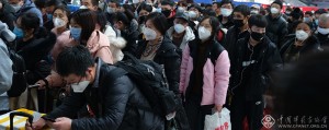 2月19日,长春火车站仍然人头攒动。候车大厅里,人们默然等待。