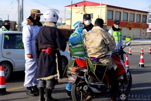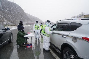 2月8日,环青海湖地区村镇过往公路都设置了检测点,做好防疫控疫工作。 才项仁增 摄