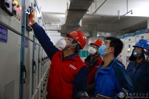 2月1日,国网银川永宁县供电公司工作人员,正在对宁夏版“小汤山”银川市临时急救医院需要及时配电。田满潮 摄