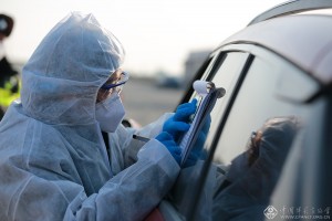 2月1日,基层医务工作者于佳丽坚守在青铜峡火车站防控一线。曹文德 摄