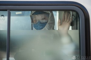 1月31日,第四人民医院,呼吸三科副主任吴玉萍,自农历除夕至今一直奋战在负压病房内的救治一线,透过玻璃窗我看到了她全副武装而又自信坚毅的面孔。马楠 摄