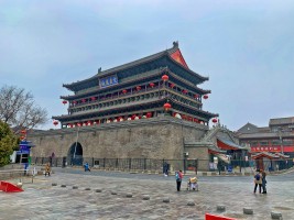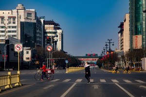 1月26日,西安鼓楼,没有了往日的繁华热闹,只有依稀的人在路边。山新莉 摄