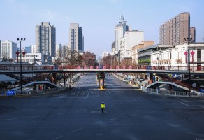 2月4日,昔日摩肩接踵、人来车往的西安小寨商圈,在全国抗击新型冠状病毒肺炎的特殊时期,街上车辆行人稀少,显得冷冷清清,只有交警同志履行职责,坚守在工作岗位上。吉秋桦 摄