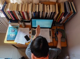 2月11日,停课不停学期间,网络教学在家进行。张卫华 摄
