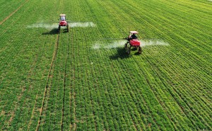2月21日,在陕西省西安市长安区引镇胡家寨村的小麦田里,二台自走式喷杆喷雾机伸出12米长臂进行喷洒作业。在全国抗疫的非常时期,机械化喷洒农民不用出门,做到了防疫、春耕两不误。陈团结 摄