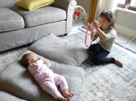 2月22日,我给妹妹拍张照。居家隔离的日子,孩子们在家自娱自乐。李志萍 摄