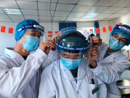 2月11日,终于收到了一批防护面罩,检验科的同事们开心极了。陈梅 摄