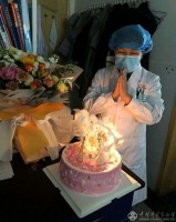 2月14日,在科室过了一个特殊生日的医务人员。陈梅 摄