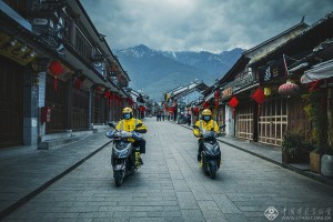 1月30日,大理古城内,外卖骑手穿梭在古城的街道上。疫情之下,古城没有了往日的繁华热闹。刘云 摄