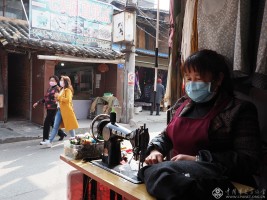 3月14日,曲靖市西门街,一位居民正在缝补衣物。赵万波 摄