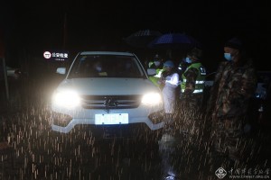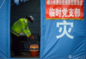 1月31日,风雨无阻,抗击疫情。交警们正在岗位上值守,把好入口第一道关。 尹云彬 摄