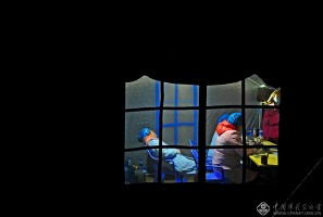 2月4日,个旧市,夜幕下正在值守的医务人员。王泰恒 摄