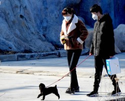 3月2日,奎屯垦区。130团居民在小区内遛狗,享受春日阳光。吴新奎 摄。