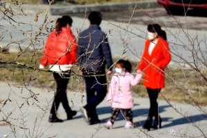 3月5日,新疆奎屯。兵团第七师胡杨河市社区干群纷纷走出家门在小区散步。孟庆忠摄