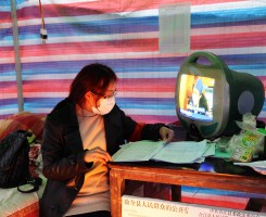 2月15日,泸州市合江县凤鸣镇乡村公路防控值勤点简易帐篷内值勤的巾帼志愿者。 向波摄 18982784182