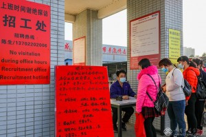 2月23日,受疫情影响,一些企业通过调高招工成本,奖励老员工介绍新工到公司面试。叶国安 摄