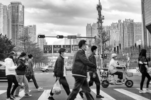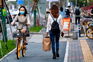 2月24日,深圳福田CBD,匆匆赶路上班族。龚新萍 摄