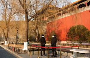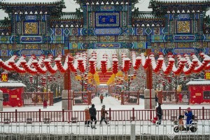 2月6日,北京地坛公园外,过年的气氛尚在,悉数居民从这里走过。地坛公园庙会是北京春节期间一个重要活动,今年因为疫情的缘故,庙会也被取消了。吴强 摄
