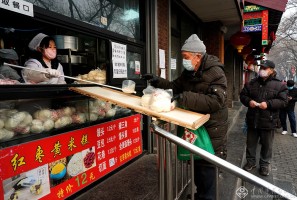 2月13日,卖馒头的店铺自创无接触销售方式。吴强 摄