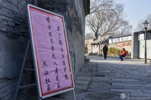 1月30日,北京前门街道大江社区,三里河景区摆放劝阻游客提升牌。张传东 摄