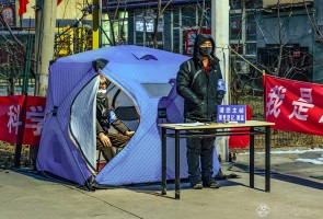 2月4日,北京平谷,彻夜坚守的工作者。杨青海 摄