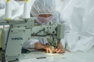 2月25日,河南省郑州市,加班抢制防护服。董芳 摄