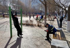 3月2日,内蒙古下调疫情应对等级后, 呼和浩特人民公园健身的老人。吴运生 摄