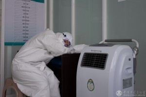 2月15日,阿鲁科尔沁旗同济医院全体动员、全力以赴,医护人员主动放弃休假,奋战在抗击疫情一线。在阿旗同济医院的发热门诊,我们会看到被防护服包裹的严严实实的身影,用他们的实际行动诠释的医者的大爱无疆。李忠慧 摄