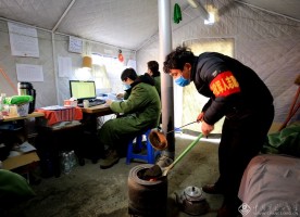 2月20日,祖国北疆、内蒙古的边陲小城——霍林郭勒市,坚守在抗击疫情的岗位上,为社区居民把好入口第一道关。寒冷的天气,他们在临时搭建的帐篷内,烧炉取暖。刘克强 摄