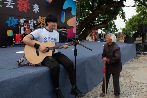金溪大坊村浓厚的创意氛围,让白发老人与文艺青年有了共鸣。(李山冕 摄)