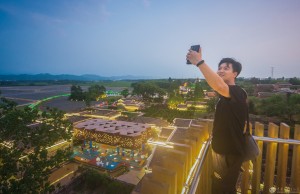 初夏的夜晚,游人在金溪大坊村徘徊塔上纵情自拍。(李山冕 摄)