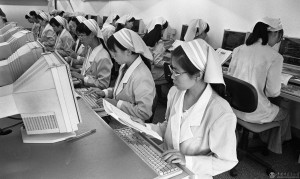 1993年,香港独资的某电脑公司职员们正在录入数据。