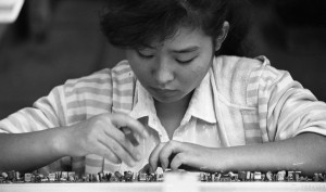 1993年,深圳,香港独资的电子工业有限公司的员工正在工作。