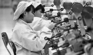 1993年,香港独资的秀峰电子工业公司的工人正在工作。
