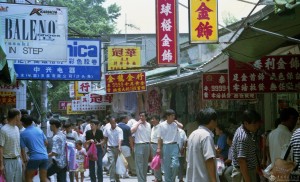 1994年,深圳沙头角中英街。这是当年到深圳必然要光顾的一条特殊的街道,这里的商铺出售许多进口商品,是游客必到之处。